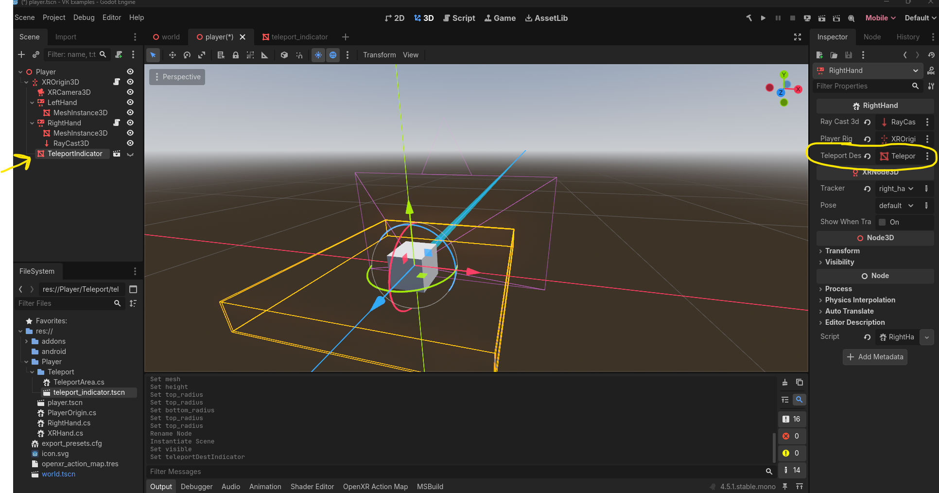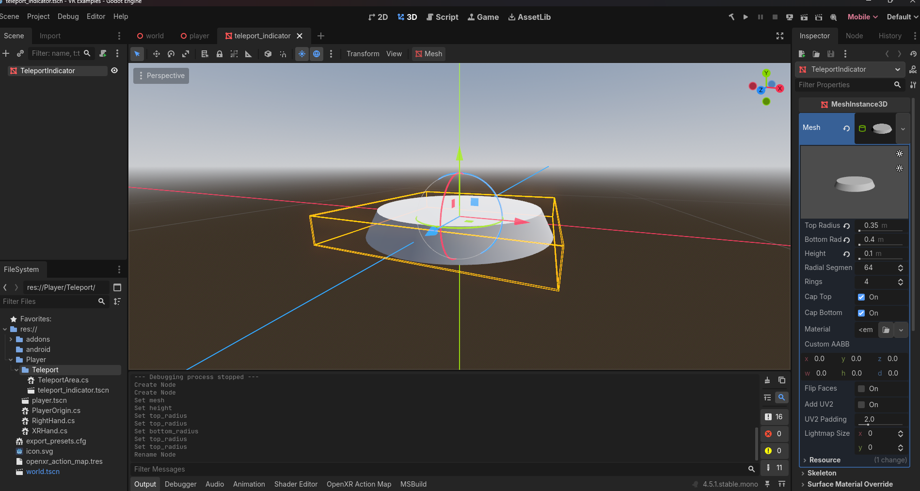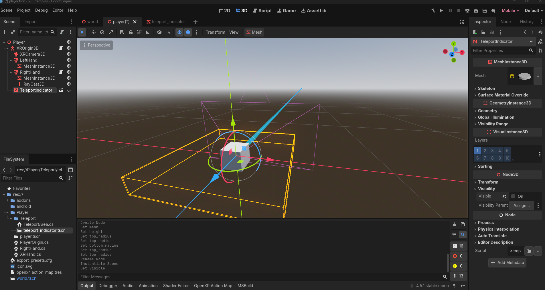 Rename MeshInstance3D to TeleportIndicator. Save the scene with your player scenes as TeleportIndicator.