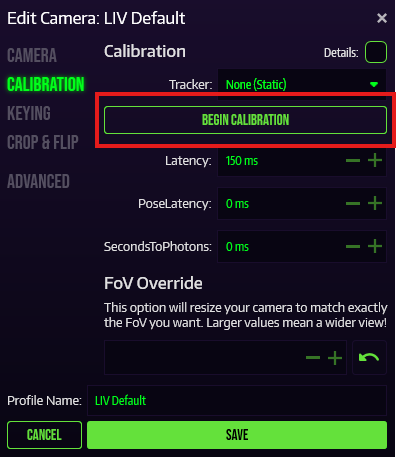 At this point, you can click “Begin Calibration”