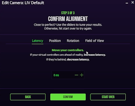 Now since this calibration isn’t perfect, we can fine-tune it. In your VR view, you will see a few tabs with controls. You can also see them on your computer monitor.