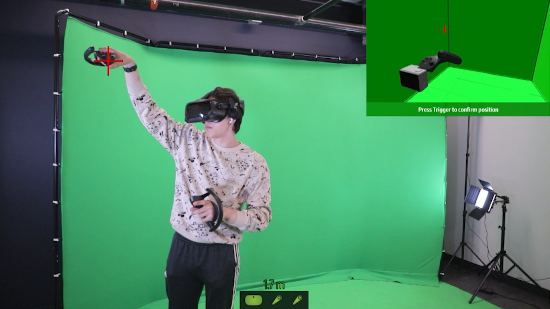 You may need to press the trigger twice, if you are using the other controller. For example, if I did the first plus with the right controller, and I want to do the second plus with the left controller, I would need to press the trigger once to tell the software I’m using the other controller, and again to confirm the position.